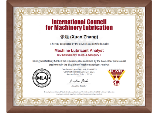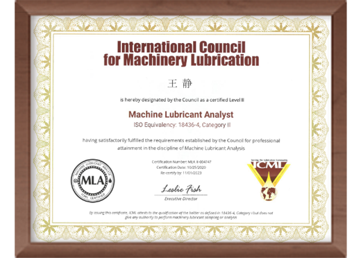 我们的实验室由国际著名设备润滑专家与磨损分析权威丁光健博士创立,并取得了CMA认证,成为中立的第三方实验室。