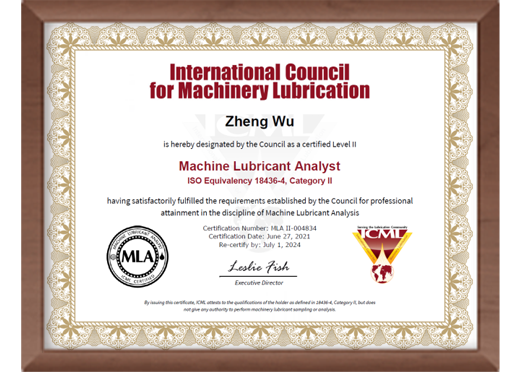 我们的实验室由国际著名设备润滑专家与磨损分析权威丁光健博士创立,并取得了CMA认证,成为中立的第三方实验室。